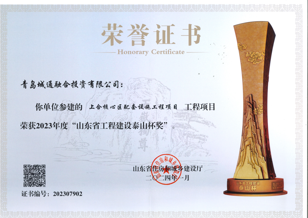 5月10日,山東省住房和城鄉(xiāng)建設(shè)廳正式授予青島城投產(chǎn)業(yè)園集團(tuán)參建的上合核心區(qū)配套設(shè)施工程項目“2023年山東省工程建設(shè)泰山杯”榮譽(yù),該榮譽(yù)是全省全年度建設(shè)工程質(zhì)量領(lǐng)域的最高榮譽(yù)。