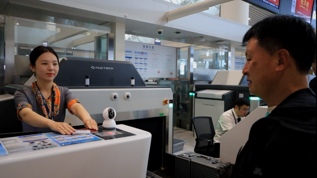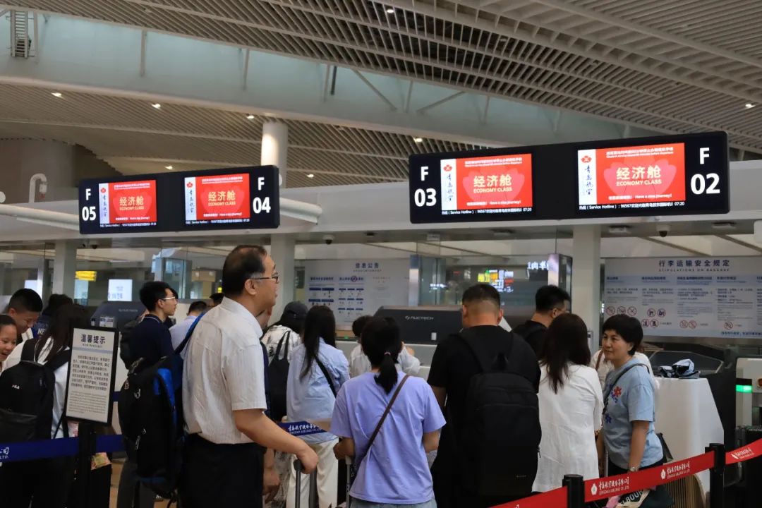 (旅客在青島航空值機(jī)柜臺(tái)辦理值機(jī))