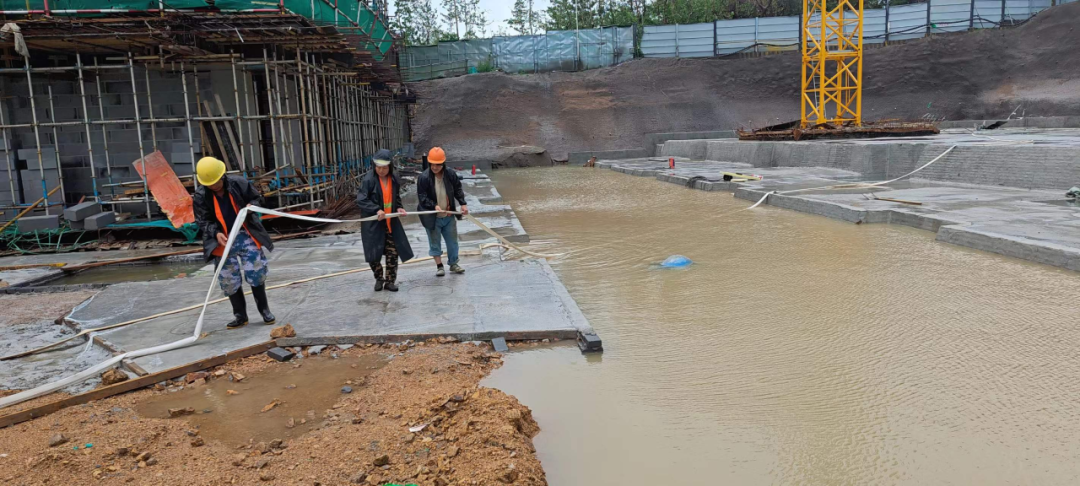 7月20日,地產(chǎn)集團和川項目部連夜啟動防汛應急預案,防汛應急隊伍20余人全部在崗備勤,潛水泵、鐵鍬、雨衣、雨靴、防汛沙袋等排水防汛物資完成點驗、檢修,確保降雨時隨調(diào)隨用。同時對基坑,高堆土、腳手架、電氣設備等關鍵設施、重點部位進行巡查,填補漏洞。本次降雨過程,施工現(xiàn)場未出現(xiàn)任何基坑坍塌、觸電漏電及工程實體受損等事故,現(xiàn)場清理和積水抽排工作正緊張而有序的進行。