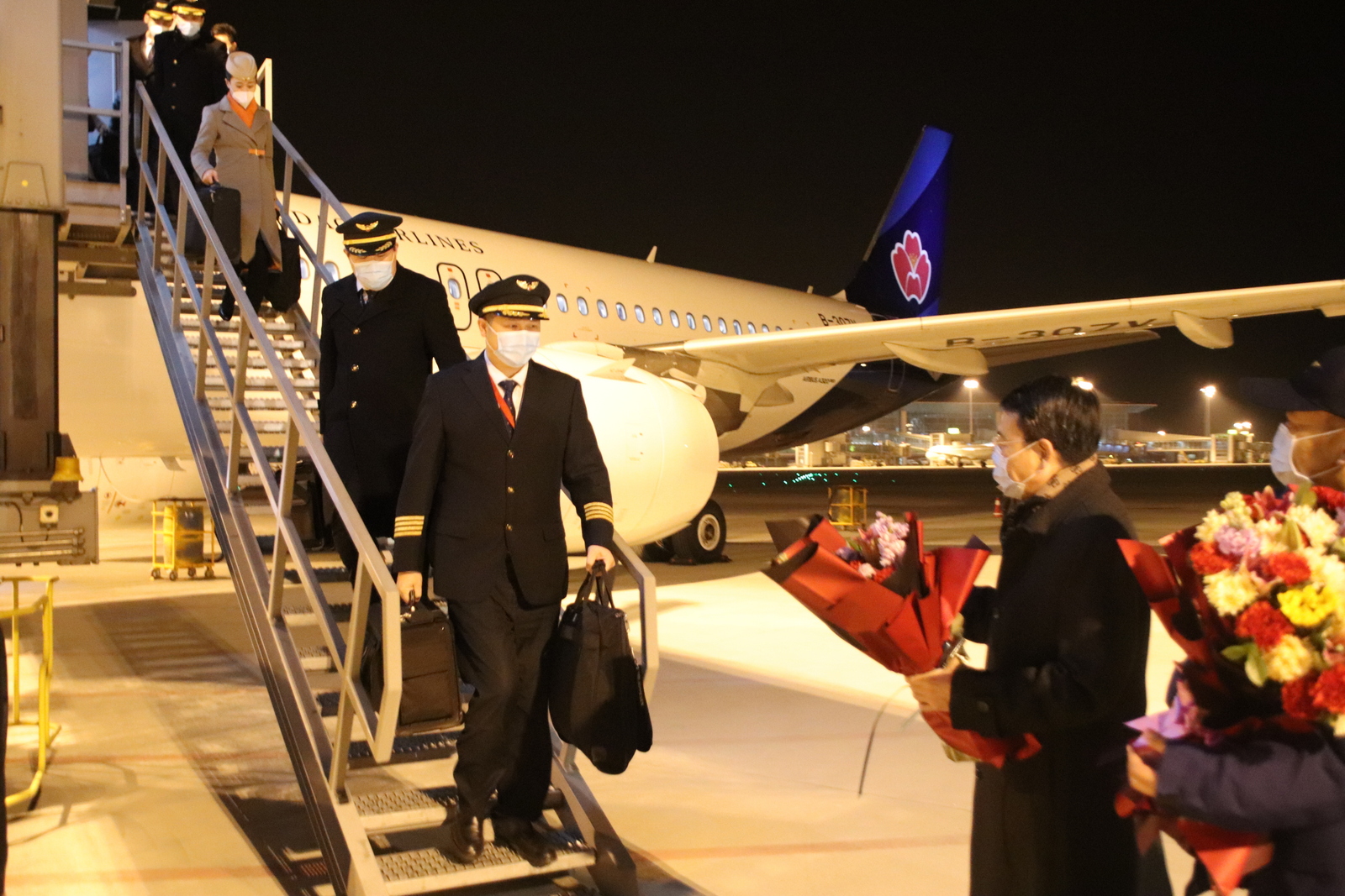 青島城投集團(tuán)黨委書記、董事長陳明東一行前往青島膠東國際機(jī)場機(jī)坪,迎接執(zhí)行2021年最后一個航班的機(jī)組人員平安歸來,代表城投集團(tuán)向全體機(jī)組人員和堅守崗位的一線員工表達(dá)慰問,感謝大家一年來為青島航空的安全運(yùn)行和發(fā)展做出的貢獻(xiàn),并送上新年祝福,希望大家在新的一年再接再厲,繼續(xù)為公司安全運(yùn)行和發(fā)展貢獻(xiàn)力量。城投集團(tuán)董事劉裕良,城投集團(tuán)黨委委員、副總經(jīng)理高玉貞,青島航空公司主要領(lǐng)導(dǎo)陪同接機(jī)。