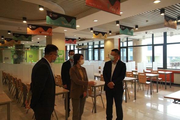 近期,青島市紀(jì)委、市監(jiān)委駐市教育局紀(jì)檢監(jiān)察組組長、市教育局黨組成員張丹丹一行到山東省青島第一國際學(xué)校進(jìn)行疫情防控工作督查。創(chuàng)發(fā)集團(tuán)黨委委員、副總經(jīng)理尚杰,國際學(xué)校運(yùn)營總監(jiān)董濟(jì)維、副校長計(jì)祝保陪同并現(xiàn)場匯報(bào)國際學(xué)校疫情防控及教育教學(xué)工作情況。
