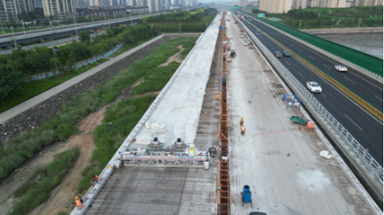 (圖為青蘭高速雙埠至河套段改擴建項目現(xiàn)場)