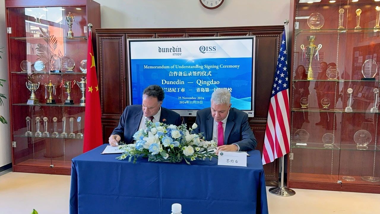 11月26日,新西蘭達(dá)尼丁市市長Jules Radich率領(lǐng)代表團(tuán)訪問山東省青島第一國際學(xué)校。此次訪問旨在增進(jìn)兩市在教育領(lǐng)域的交流與合作,推動雙方在多個方面的友好合作關(guān)系。青島市委外辦副主任丁安輝,青島城投集團(tuán)黨委委員、副總經(jīng)理殷淙出席活動。(圖為簽約儀式的現(xiàn)場照片)在訪校過程中,殷淙代表青島城投集團(tuán)對Jules Radich市長一行的到來表示了熱烈歡迎,闡釋了集團(tuán)對推動兩市教育事業(yè)合作良好愿景,介紹了集團(tuán)在教育領(lǐng)域的投資