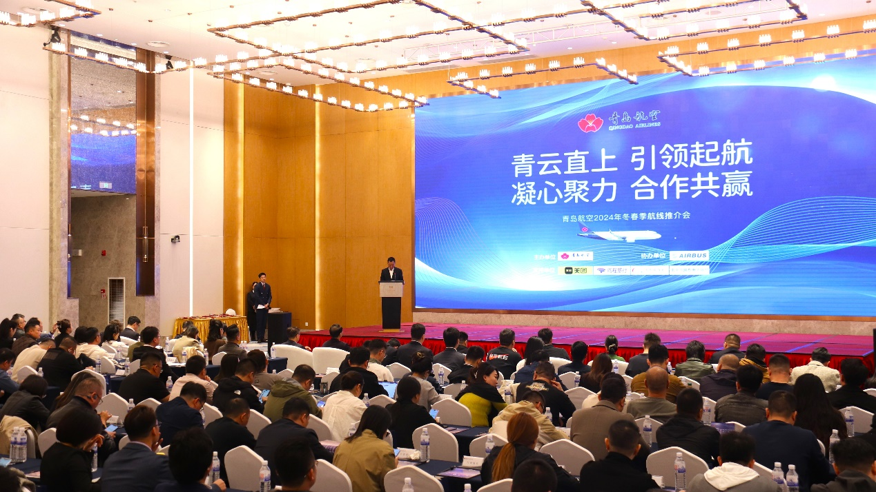 10月27日,中國民航將開始執(zhí)行2024年冬春航季航班時刻。青島城投集團旗下青島航空在近期組織開展了2024年冬春航季航線推介活動,對外公布了新航季航班時刻等信息。(圖為換季推介會現(xiàn)場)2024年冬春航季,青島航空計劃投入31架運力,其中青島14架、長春6架、成都3架、長沙2架、西雙版納2架、沈陽2架、大連1架、昆明1架,總運營航線達到60條。新開航線14條,涵蓋51個國內(nèi)航點,8個國際及地區(qū)航點,新增了南通、揭陽2個通航點,