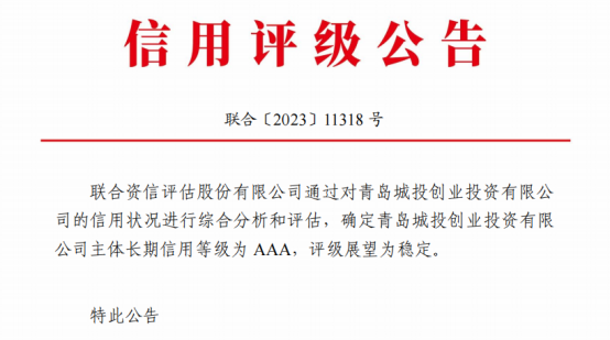青島首家AAA評(píng)級(jí)創(chuàng)投機(jī)構(gòu)誕生!城投集團(tuán)3A主體評(píng)級(jí)企業(yè)達(dá)4家