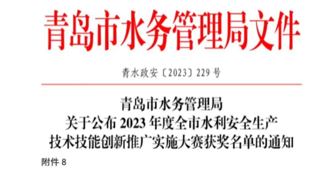近日,青島市水務管理局印發(fā)《關(guān)于公布2023年度全市水利安全生產(chǎn)技術(shù)技能創(chuàng)新推廣實施大賽獲獎名單的通知》,青島城投集團官路水庫公司榮獲“2023年度全市水利安全生產(chǎn)技術(shù)技能創(chuàng)新推廣實施大賽特別貢獻獎”。(圖為部分獲獎名單)水利安全生產(chǎn)技術(shù)技能創(chuàng)新推廣實施大賽是深入貫徹落實習近平總書記“十六字”治水思路和關(guān)于治水興水重要講話批示指示精神的具體舉措;是推動《山東省黃河流域生態(tài)保護和高質(zhì)量發(fā)展規(guī)劃》全面實施、