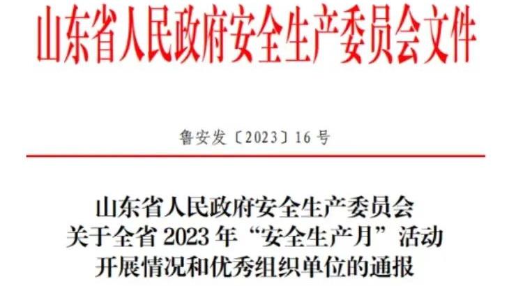 青島城投集團榮獲“全省2023年安全生產月活動優(yōu)秀組織單位”