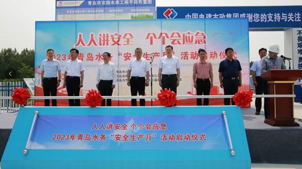 6月1日下午,官路水庫工程建設現(xiàn)場,市水務局會同青島城投集團官路水庫公司舉辦2023年全市水務“安全生產(chǎn)月”活動啟動儀式,市政府黨組成員、副市長宋明杰,市水務局、膠州市相關領導,城投集團黨委委員、副總經(jīng)理林松濤出席活動,項目施工單位、監(jiān)理單位、設計等單位代表參加活動。(圖為“安全生產(chǎn)月”活動啟動現(xiàn)場)儀式現(xiàn)場,宋明杰副市長宣布青島市水務安全生產(chǎn)月活動正式啟動,市水務局主要領導做指導發(fā)言,官路水庫工程項