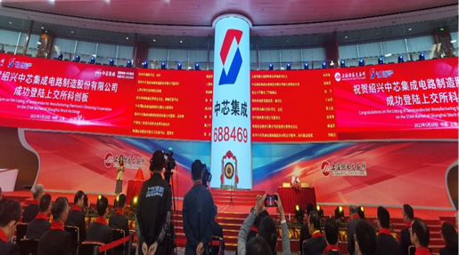 2023年5月10日,青島城投集團(tuán)創(chuàng)投公司投資企業(yè)——紹興中芯集成電路制造股份有限公司(以下簡(jiǎn)稱“中芯集成”)在上海證券交易所科創(chuàng)板掛牌上市,成功登陸A股資本市場(chǎng),創(chuàng)投公司負(fù)責(zé)人受邀出席中芯集成上市儀式。中芯集成科創(chuàng)板首發(fā)新股數(shù)量16.92億股,發(fā)行價(jià)格5.69元/股,募集資金96.27億元。上市首日收盤價(jià)6.3元/股,漲幅超10%,市值達(dá)426億元。(圖為中芯集成上市儀式現(xiàn)場(chǎng))創(chuàng)投公司于2020年12月通過盈科基金出資3.2億元參與中