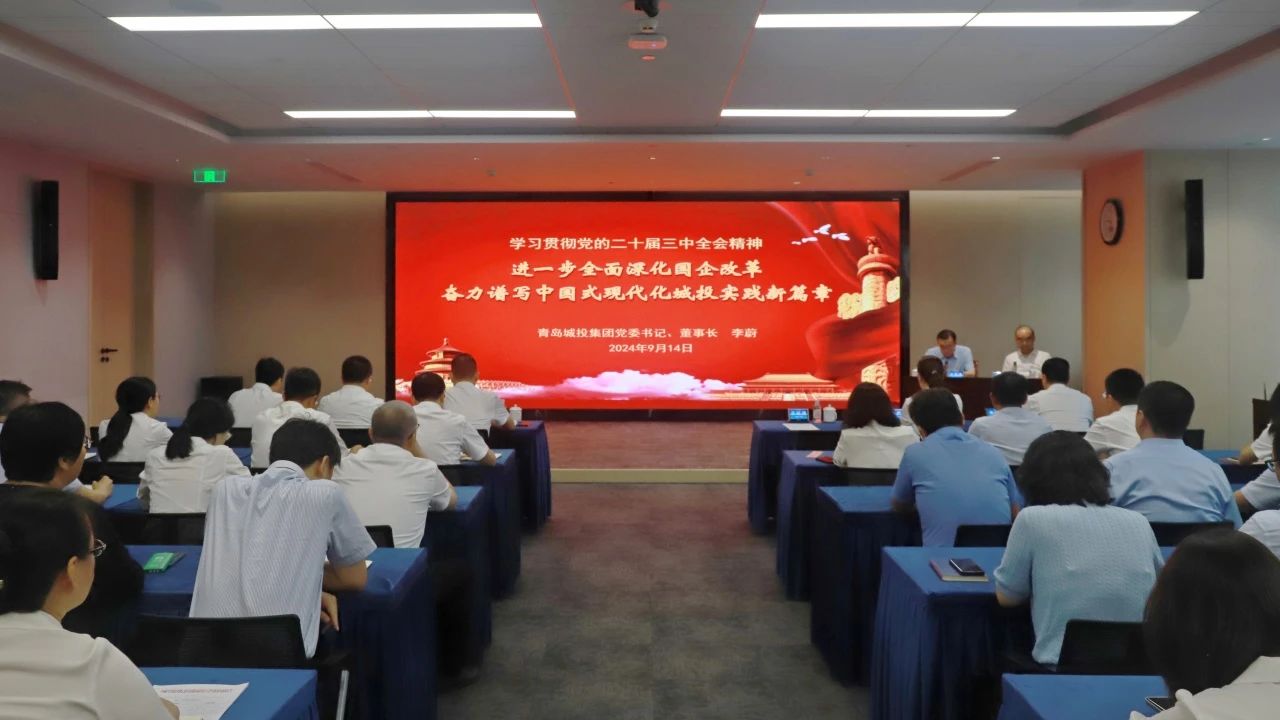 MORE +为全面深入学习领会党的二十届三中全会精神,扎实推进学习宣传贯彻工作,9月14日,青岛城投集团举办党的二十届三中全会精神宣讲报告会。本次宣讲会通过分设会场、视频直播方式进行。集团党委书记、董事长李蔚作宣讲报告,集团党委副书记、总经理于延涛主持会议,集团党委班子成员、干部职工代表102人在主会场学习,约1200名党员干部职工在分会场收看。(图为宣讲报告会现场)李蔚以“进一步全面深化国企改革 奋力谱写中国式现代化